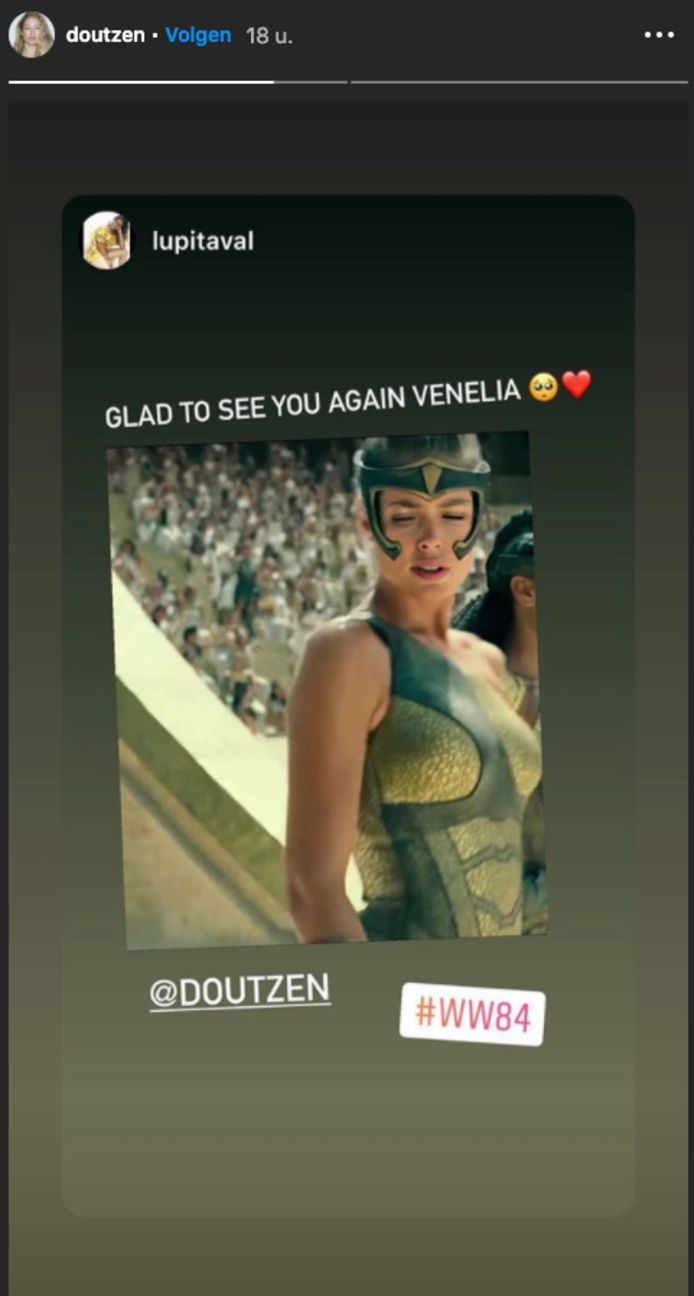 Het topmodel pakt haar rol als Venelia weer op zo is te zien in de trailer. Doutzen Kroes deelt een foto vanaf de set van de film Wonder Woman waar zij een rolletje in wist te bemachtigen. Doutzen Kroes is ook in de sequel van Wonder Woman Wonder Woman 1984 te zien.